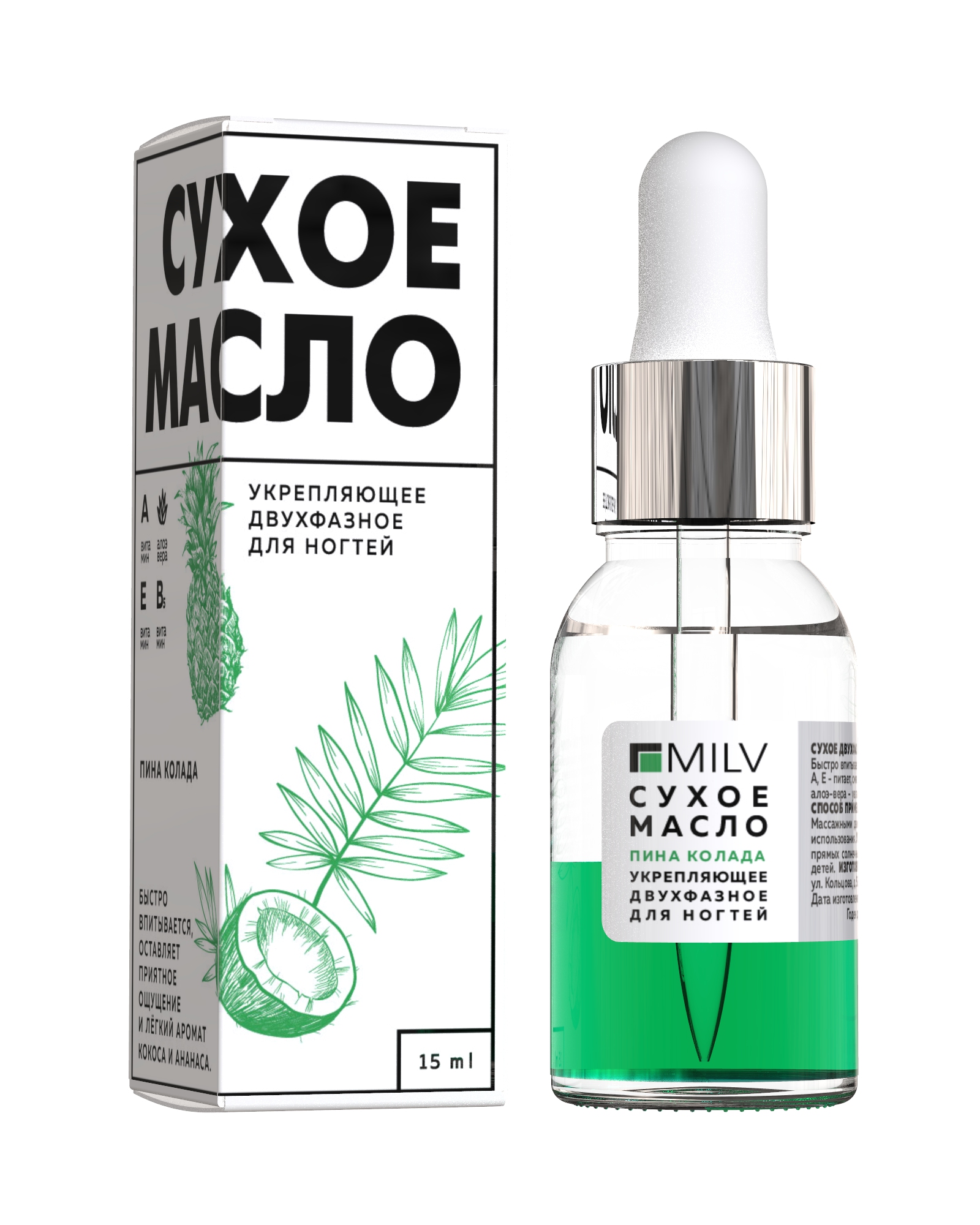 Сухое двухфазное масло для ногтей «Пина колада». 15 мл. Milv